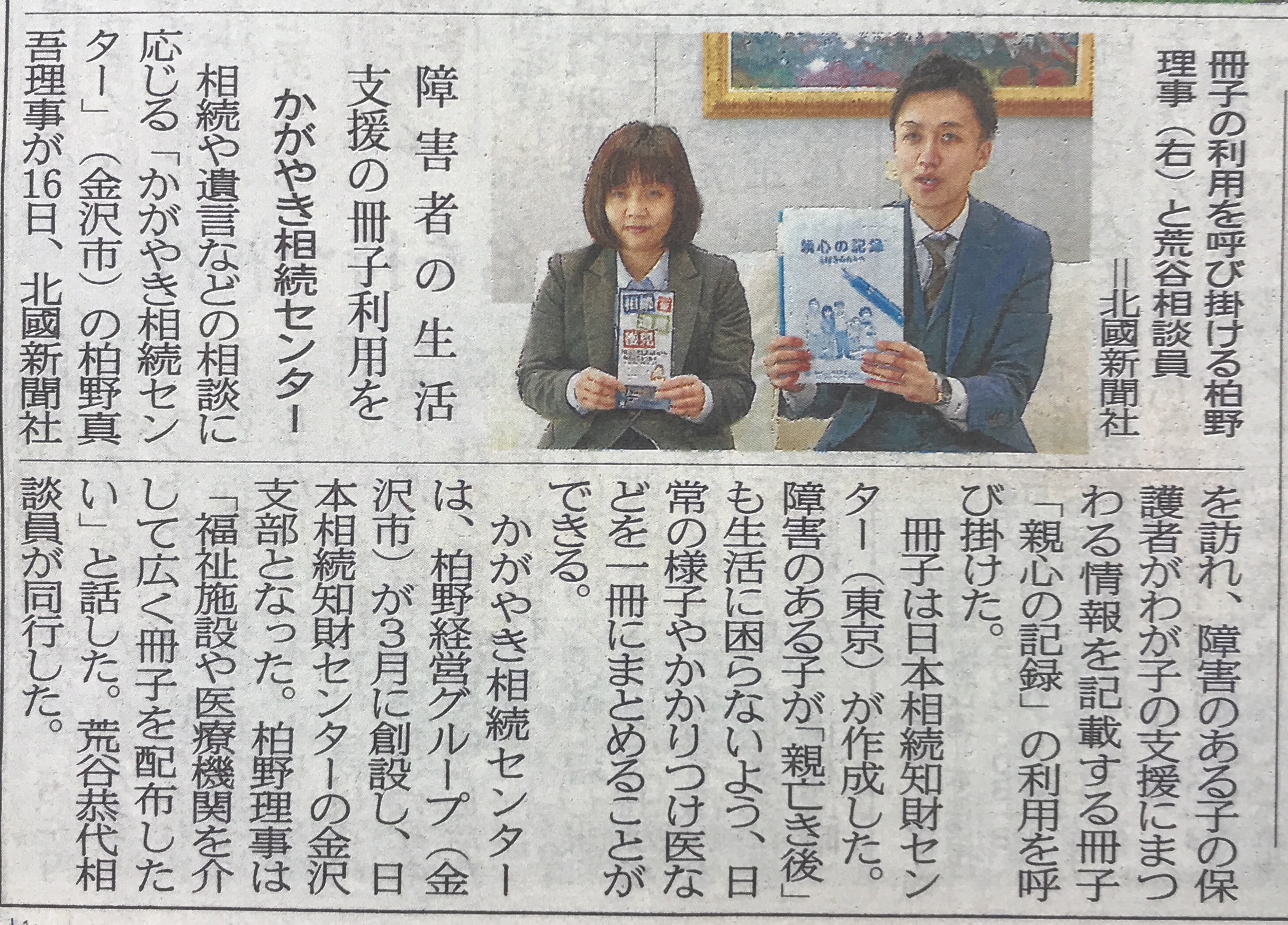 2018/04/17付けの朝刊にかがやき相続センターが掲載されました。